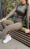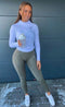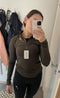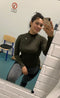 Denne er fantastisk! Konsistent ribbede detaljer. Tætsiddende og flatterende. Viser ikke svedmærker på stoffet. Materialet er meget elastisk. Jeg elsker, at den er lang i livet og i ærmerne. Jeg har min i størrelse small, og den passer mig perfekt på alle områder undtagen fra nakken ud til skuldrene. Skulderområdet er smalt. Men jeg er ret bred over ryggen, og det påvirker pasformen der. Denne vil nok blive brugt mest til hverdag på grund af pasformen omkring skuldrene, evt. på dage hvor jeg træner ben. Men hold da op, for en dejlig hverdagstrøje! 🙌🏾