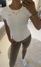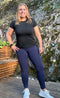 God kvalitet. Passer godt sammen med bukser/tights med høj talje, da T-shirten er lidt kort.