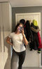 Jeg er meget tilfreds med denne t-shirt! Stoffet er blødt og elastisk 😍 Den er ret lang, men den sidder pænt, hvis du vil have den kortere. Jeg har t-shirten i størrelse S, som er min normale størrelse.