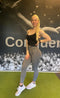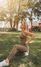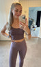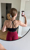 Jeg elsker, at denne top kan bæres uden en bh under. Den har medium støtte, perfekt til pilates og grundlæggende træningsprogrammer. Den er en smule strammere end de fleste toppe, men jeg kan stadig bære den i min normale størrelse. Et stort plus for de justerbare stropper!